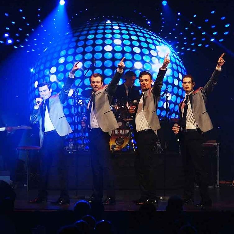 Songs include: Walk Like a Man, Sherry, Can’t Buy Me Love, Let it Be, Hey Jude, Imagine, Blame it on the Boogie, ABC, Unchained Melody, Bridge Over Troubled Water, Surfin’ USA, Good Vibrations, Night Fever, Staying Alive and medleys of the biggest mega hits the world has known.